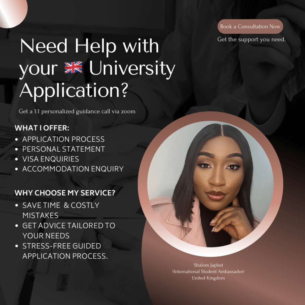 Feel free to reach out, if you need further assistance. Ask your questions for more clarity, I’ll be more than happy to help. BOOK A CONSULTATION International Student Ambassador (University of Wolverhampton)